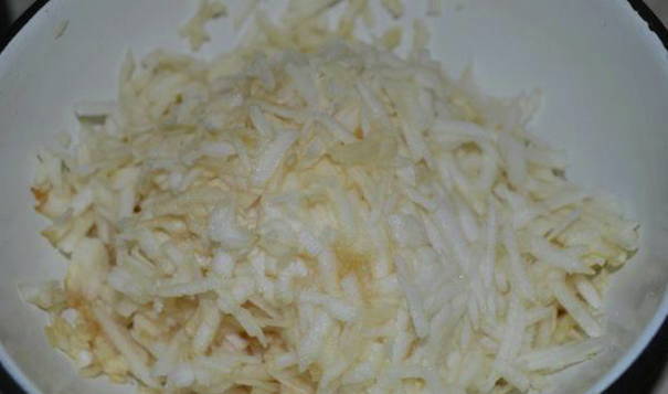 - Was de appel, veeg af met keukenpapier en rasp op een grove rasp. Meng het appelmengsel met kwark, suiker en vanille.