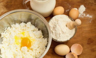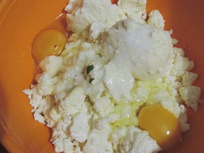- Maal de kwark apart, voeg er eieren en een beetje zout aan toe.