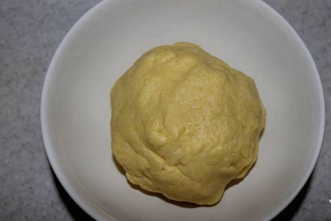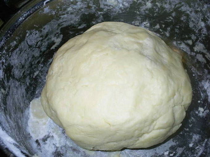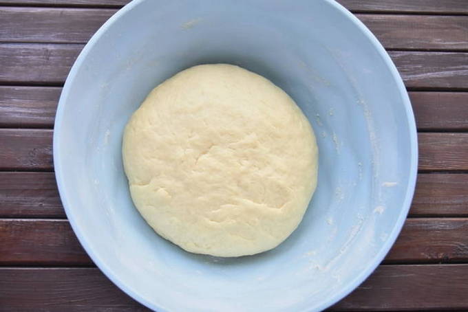 - Het deeg wordt goed gekneed, afgedekt met een servet en ongeveer een half uur op een warme plaats gehouden om het te laten rijzen.