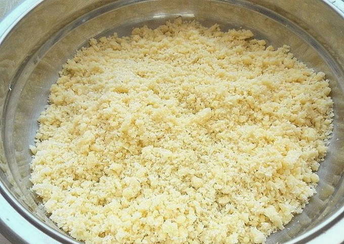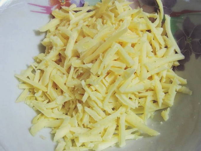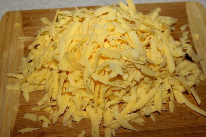 - De kaas wordt tot schaafsel gewreven en gemengd met eieren.