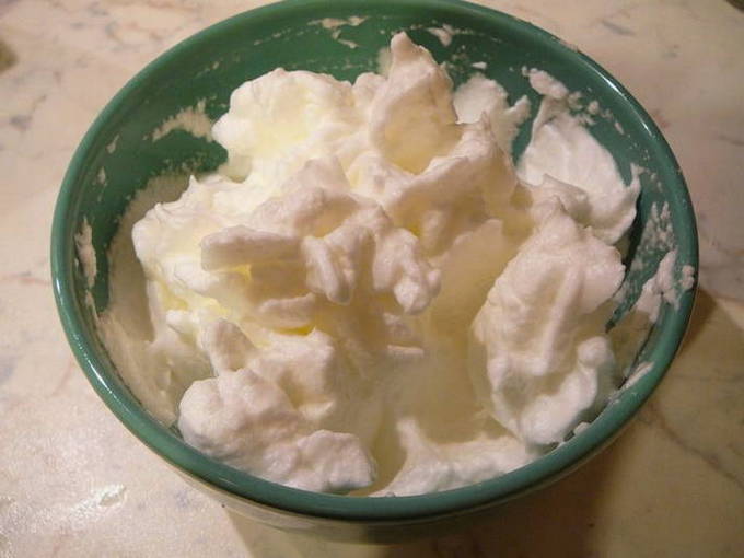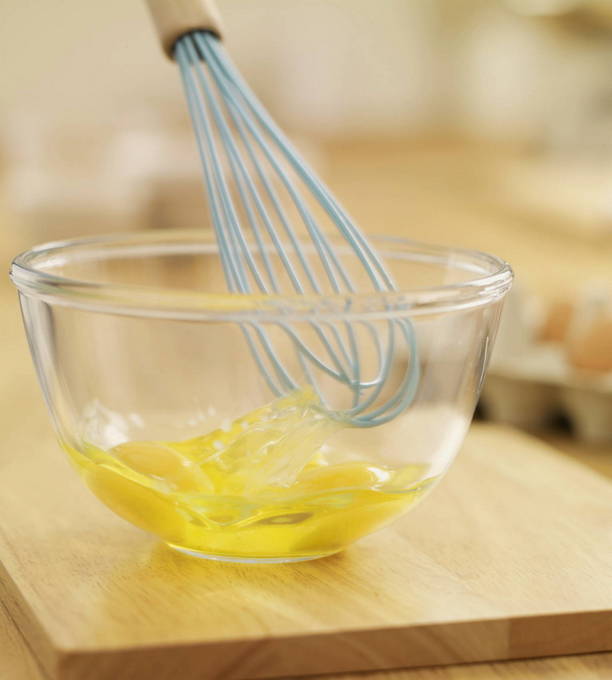 - Klop het eiwit van de eieren tot een stabiel schuim is verkregen.
