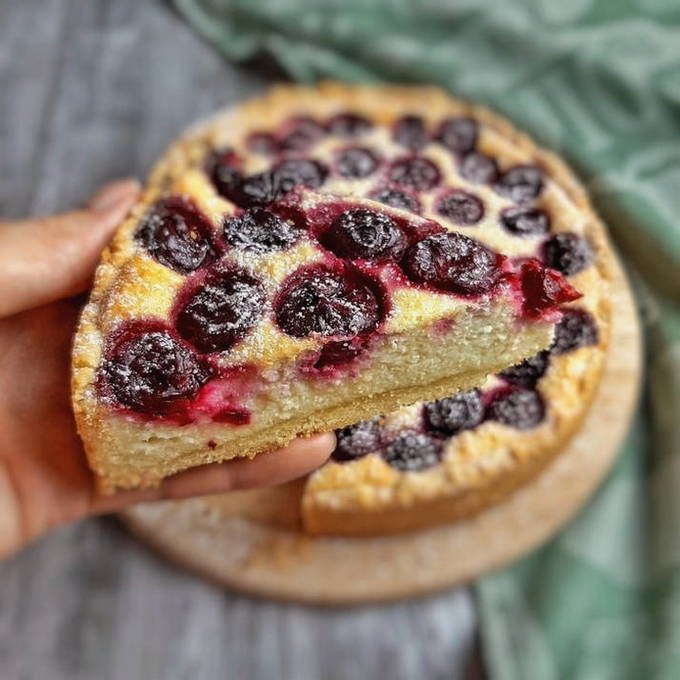 Dit recept gebruikt een deeg dat lijkt op zandkoek, maar dankzij zure room blijkt het malser en zachter te zijn. Kersen voegen zuurheid toe aan gebakken goederen en kwark voegt sappigheid toe.