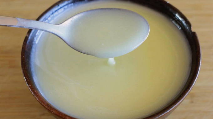 - 2 theelepels suiker en 20 gr. de oliën worden gesmolten in een bak op een waterbad totdat de suiker is opgelost en vervolgens een tijdje opzij gezet.
