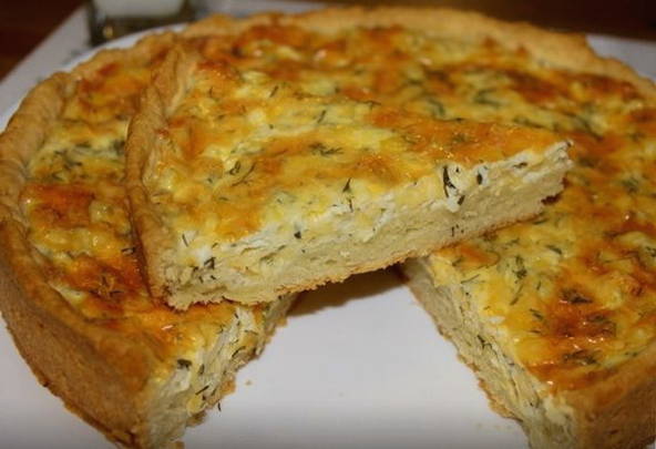 Pittige taart met wrongel- en kaasvulling, die kan worden geserveerd als aperitief of als aanvulling op voorgerechten. Knoflook en dille voegen smaak en pikantheid toe aan gebakken producten. Aromatisch en smakelijk!