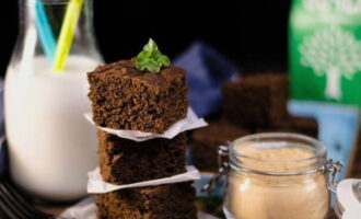 - De cake wordt 70 minuten gebakken op 200 graden. Voor het serveren is het beter om het product af te koelen, in porties te snijden en te serveren.