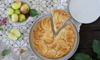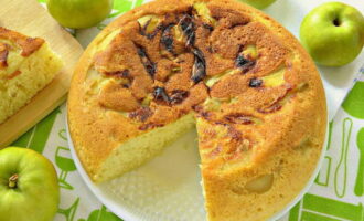Om deze cake te bereiden, moeten boter en eieren op kamertemperatuur zijn: het is beter om ze van tevoren uit de koelkast te halen en in een warme kamer te bewaren. Na het snijden worden appels besprenkeld met citroensap zodat ze niet donker worden.