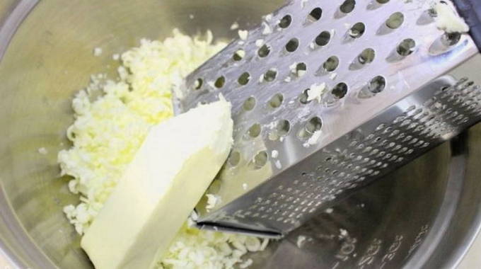 - Om een streusel-strooi voor een taart te maken, moet de boter worden ingevroren en tot schaafsel geraspt, en dan wordt het met suiker en boter tot kruimels gemalen.