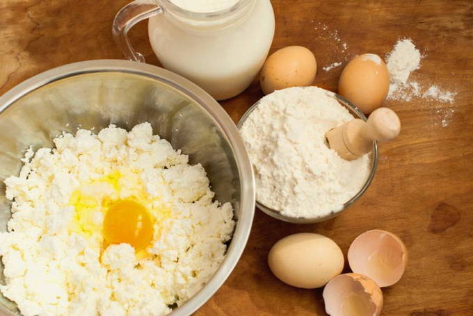 - Maal de kwark apart, voeg er eieren en een beetje zout aan toe.