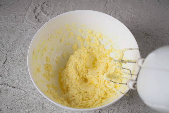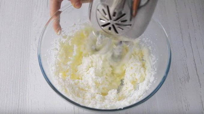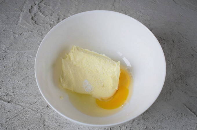 - Maak de boter zacht, voeg het ei, zout en vanilline toe.