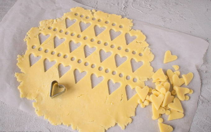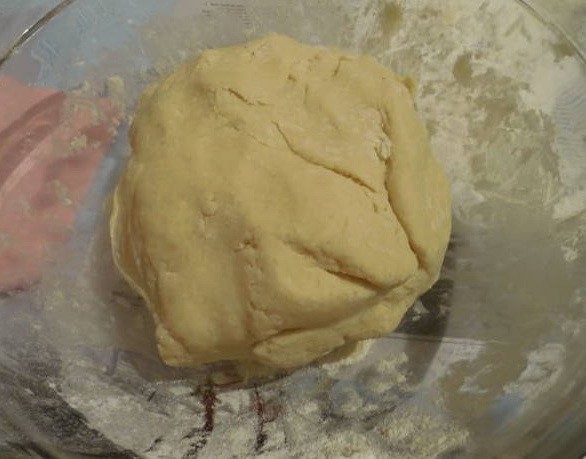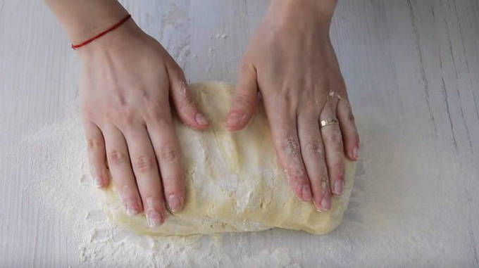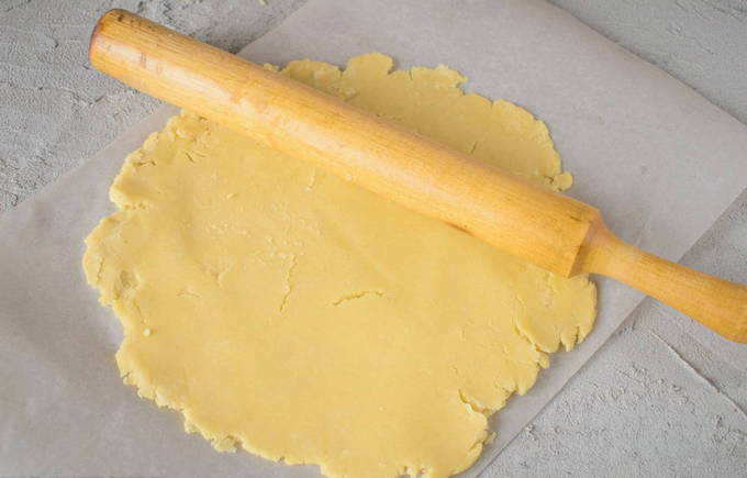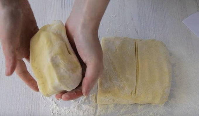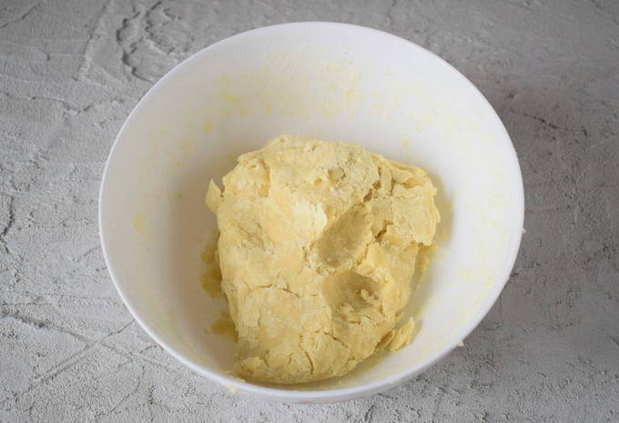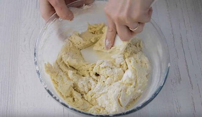 - We hakken het mengsel in een keukenmachine tot een staat van fijne kruimels. Voeg de dooier toe en kneed het deeg. Het moet plastic blijken te zijn, maar niet te zacht.