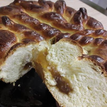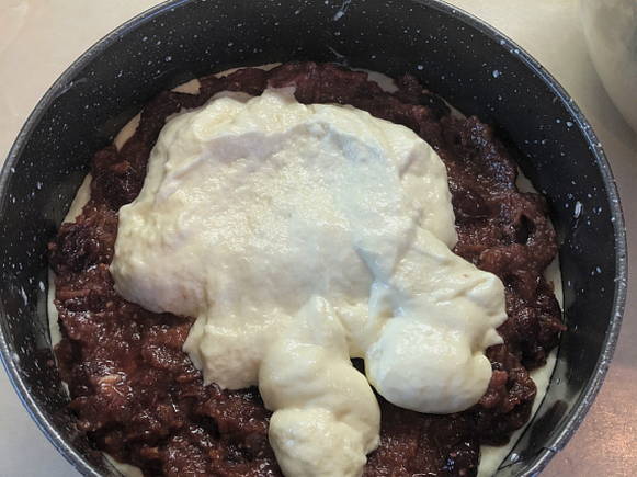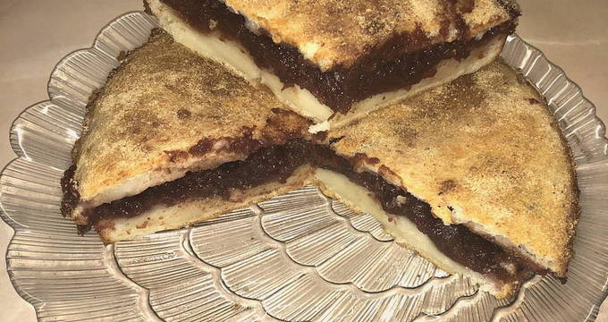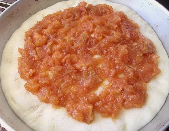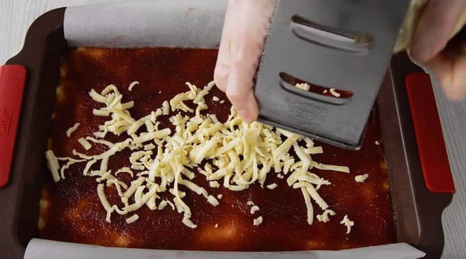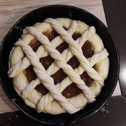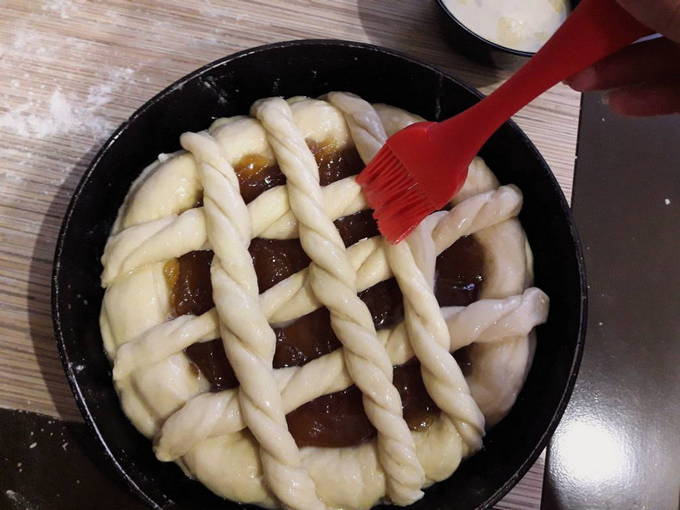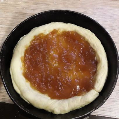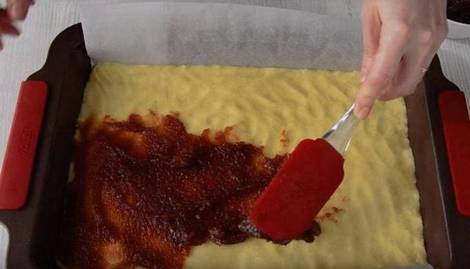- We verspreiden de jam, bedekken het met een andere laag deeg erop.