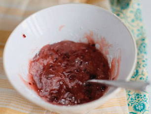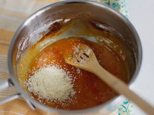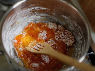 - Laten we beginnen met vullen. Meng de helft van de jam met het zetmeel en breng aan de kook.