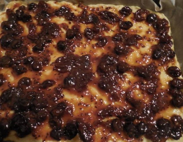 - We zetten de gerezen taart een half uur in een op 180 graden verwarmde oven.