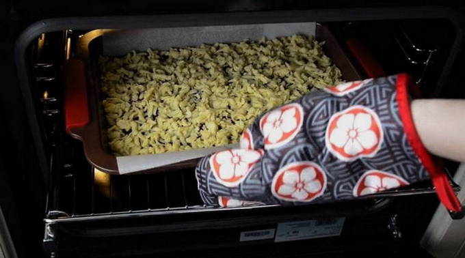 - We smeren de taart in met een ei en sturen deze een half uur naar de oven op een temperatuur van 200 graden. Eet smakelijk!