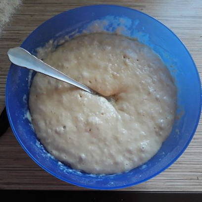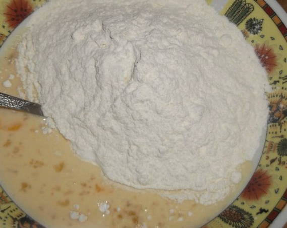 - Voeg geleidelijk bloem toe aan de resulterende massa.