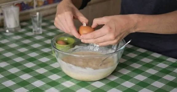 - We breken ze in een kom, waarin het afgewerkte deeg verder zal zijn.