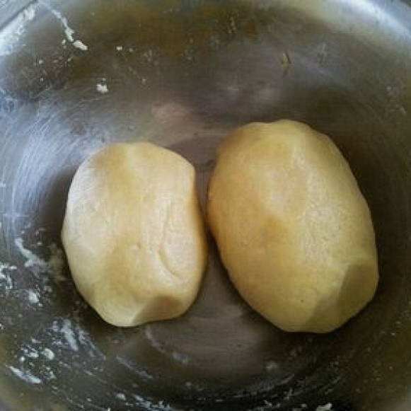 - We hakken het mengsel in een keukenmachine tot een staat van fijne kruimels. Voeg de dooier toe en kneed het deeg. Het moet plastic blijken te zijn, maar niet te zacht.