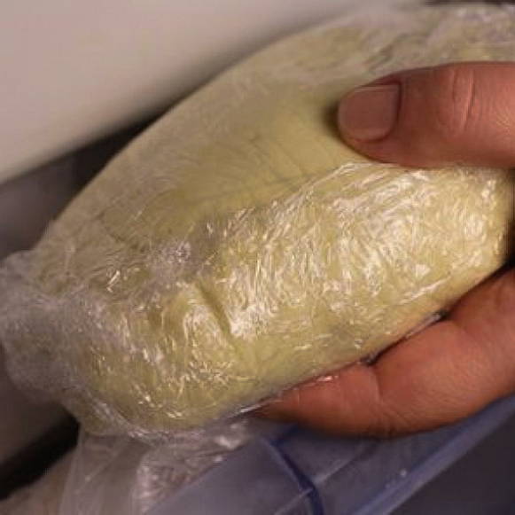 - Scheid een derde van het deeg en wikkel het in huishoudfolie.
