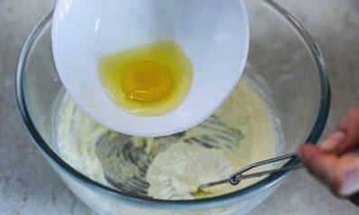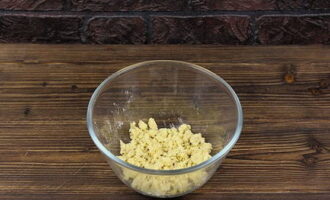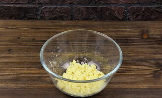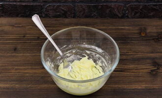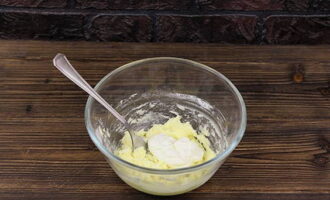 - Combineer gesmolten boter met suiker en ei apart. We malen de producten tot een gladde massa.
