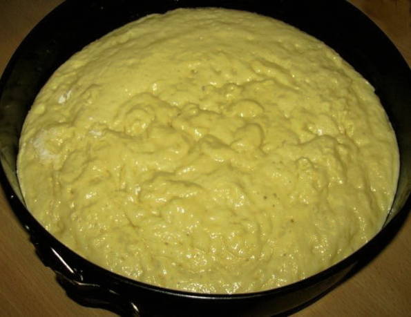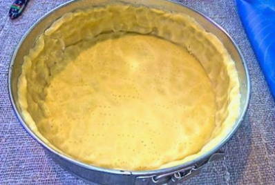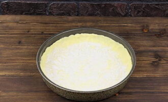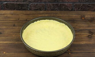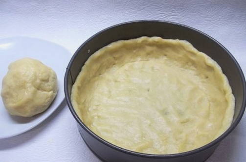- Verdeel het afgewerkte deeg over de bodem van de hittebestendige vorm.