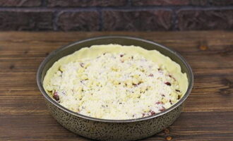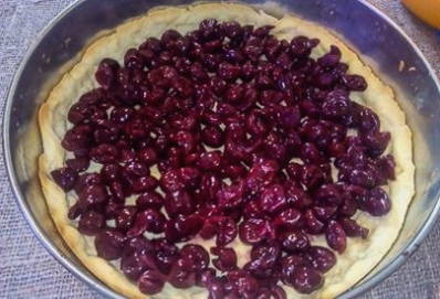 - We verspreiden de gewassen en geschilde bessen op het deeg.