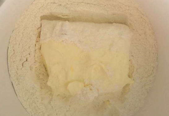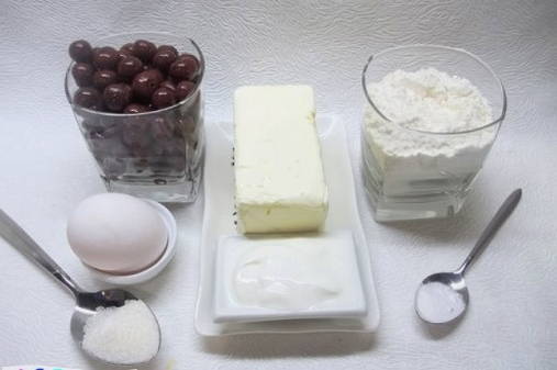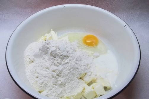 - Roer het ei goed door de suiker, zachte boter en citroenschil. We verspreiden de massa in gezeefde bloem. Voeg zure room toe en kneed de producten tot een dicht deeg.