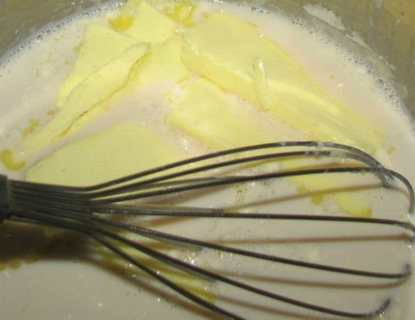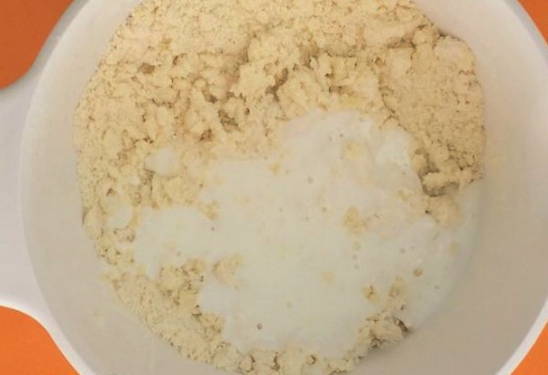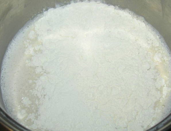 - We verwarmen de melk tot hij warm is. Doe hier gist, wat suiker en bloem. Roer het deeg en laat het 15 minuten staan.