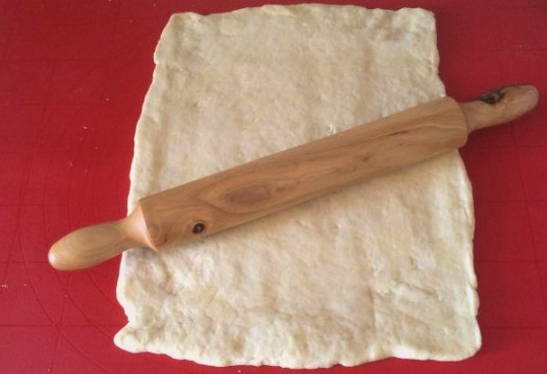 - We rollen het werkstuk uit tot een dunne rechthoekige laag.
