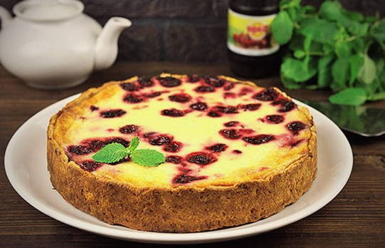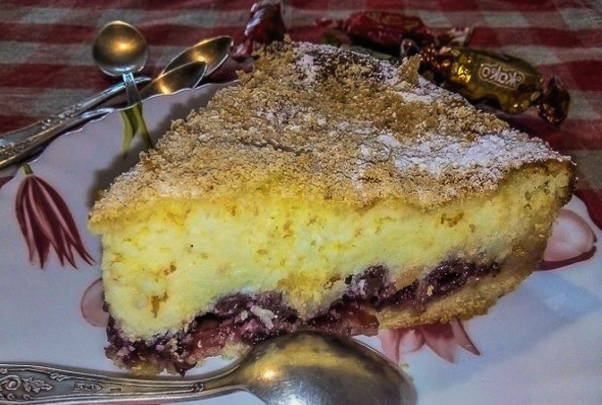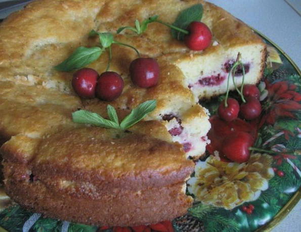 - Blozende taart gevuld met kwark en kersen is klaar. Verdeel het in porties en serveer!