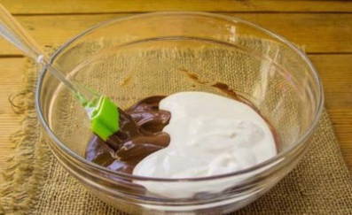Voeg zure room toe aan dezelfde massa en roer opnieuw.