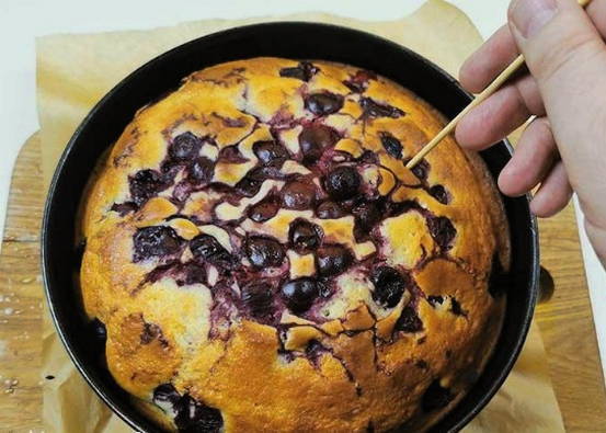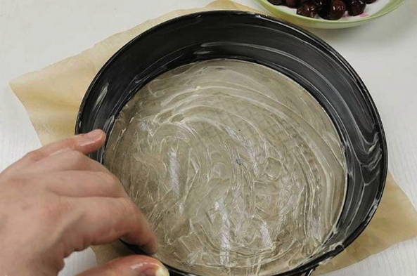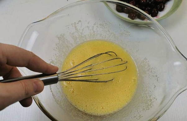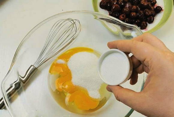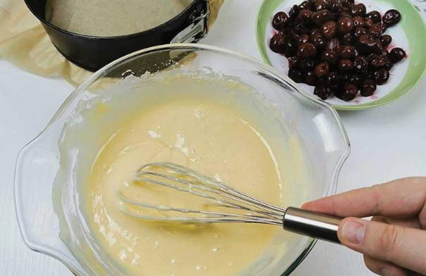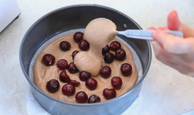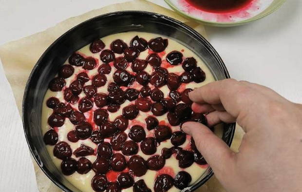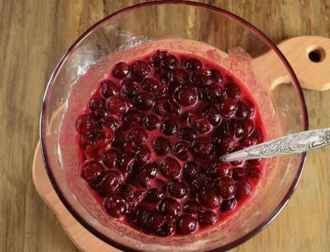- Voeg na een tijdje de voorbereide kersen toe aan het deeg.