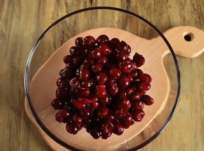 - We zullen de nodige producten bereiden voor het maken van de cake. We wassen de kersen zorgvuldig.