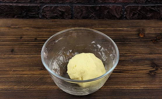 - Kook griesmeel in melk. Daarna mengen we de pap met kwark, rasp, suiker en drie kippeneieren. Kneed de massa tot een gladde massa.