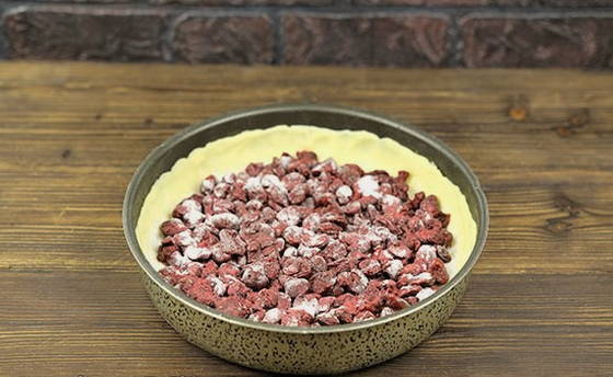 - We verspreiden de gewassen en geschilde bessen op het deeg.