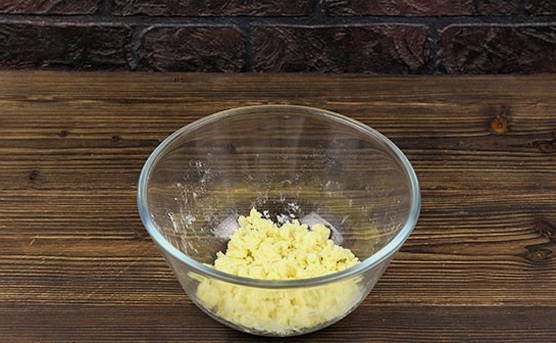 - Combineer gesmolten boter met suiker en ei apart. We malen de producten tot een gladde massa.