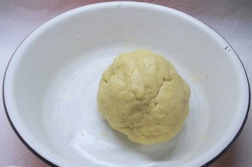 - Roer het ei goed door de suiker, zachte boter en citroenschil. We verspreiden de massa in gezeefde bloem. Voeg zure room toe en kneed de producten tot een dicht deeg.