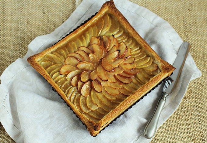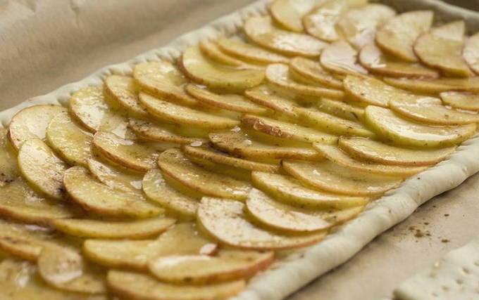 Heerlijke open bladerdeegtaart met appels