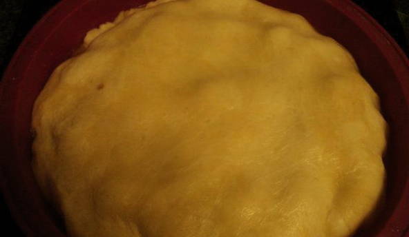 - Prik op verschillende plaatsen in de bovenkant van de taart om stoom te laten ontsnappen. Stuur het werkstuk gedurende 40 minuten naar een voorverwarmde oven op 190 graden. Bedek daarna het afgewerkte dessert met een schaal en draai het om: zodat de appel-karamelvulling bovenop komt. De Flip Pie is lekkerder als hij iets afkoelt op kamertemperatuur. Eet smakelijk!