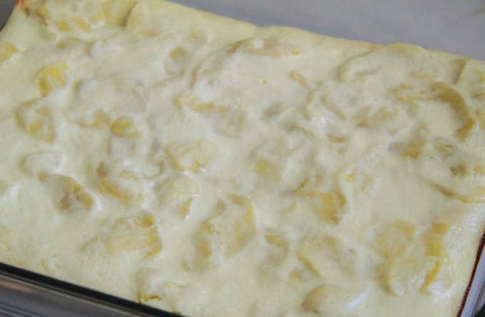 - We bakken de cake 30 minuten in de oven op 180 graden. De bodem van de cake moet bruin zijn en de vulling moet "grijpen". Na afkoeling kan de taart worden aangesneden en geserveerd: hij zal koud en warm beter smaken dan warm. Eet smakelijk!