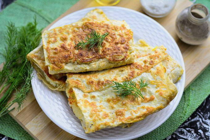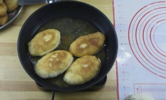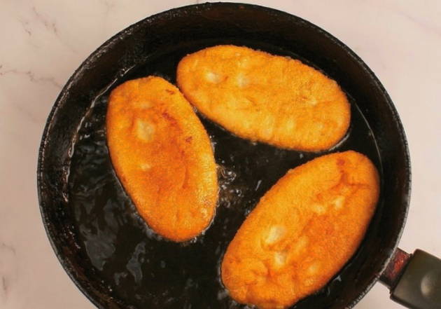 - Maak de taarten plat en bak ze aan beide kanten in verwarmde plantaardige olie. Eet smakelijk!