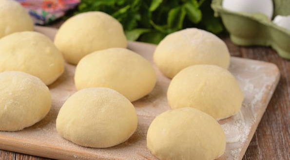 - Verdeel het deeg in 15 ballen, leg ze op tafel en laat ze 20 minuten onder een handdoek liggen.