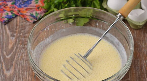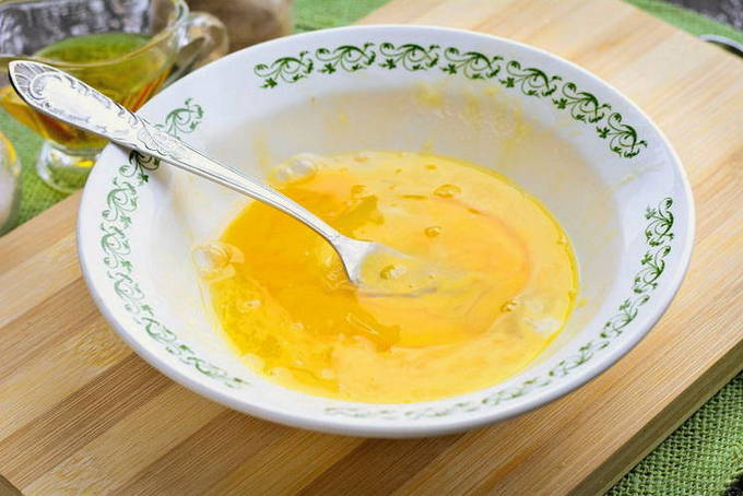 - Breek het ei in een kom en voeg er zout aan toe. Versla alles.