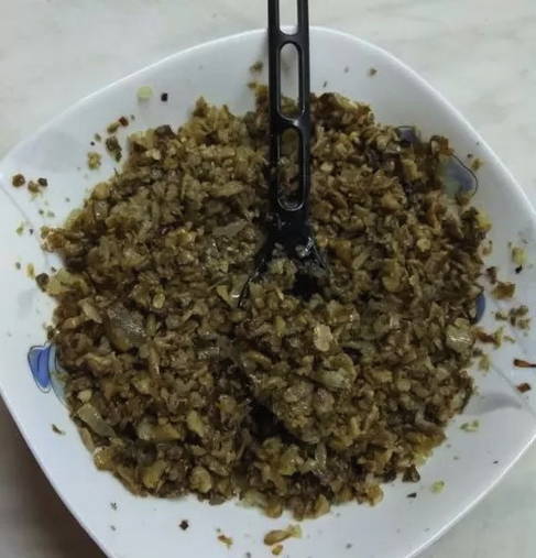 - We halen de champignons door een vleesmolen en bakken. We bakken ook de ui en voegen deze toe aan de champignons.