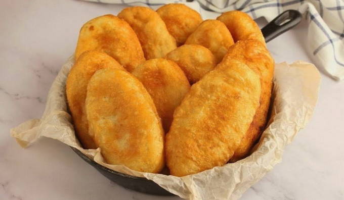 Ongelooflijk heerlijke taarten gemaakt van gistvrij deeg. Door het bakken in een pan koken ze heel snel, en de bereiding van het deeg zelf en de vulling zal niet moeilijk zijn.