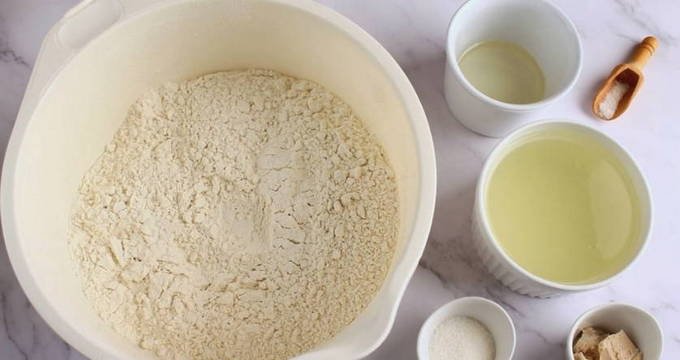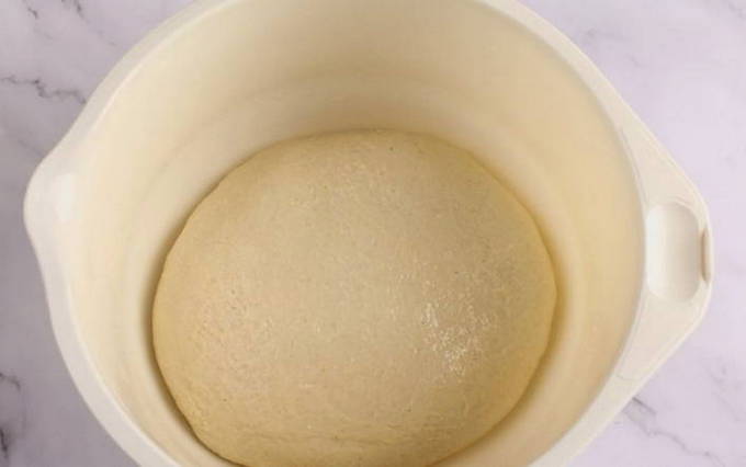 - We verzamelen het deeg in een bal en doen het in een kom, waar we het invetten met plantaardige olie.