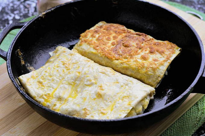 - Snijd de lavash in reepjes zodat de vulling helemaal ingepakt kan worden.