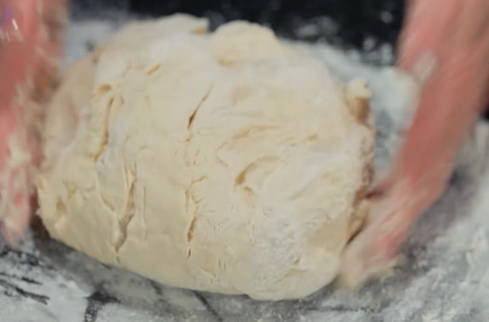 - Daarna brengen we het naar het werkoppervlak en kneden het ongeveer 10 minuten met onze handen.