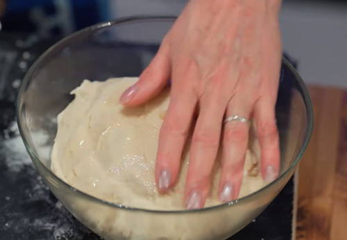 - We rimpelen het deeg een beetje met onze handen en bedekken het een tijdje terwijl we de vulling voorbereiden.