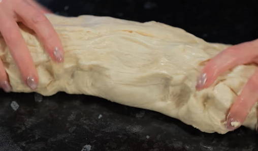- Voor het deeg gebruiken we warme aardappelbouillon.