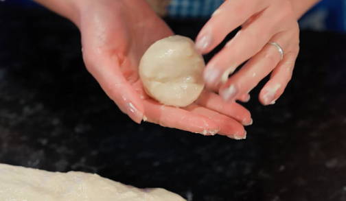 - Verdeel het deeg in aparte stukken en vorm er balletjes van.